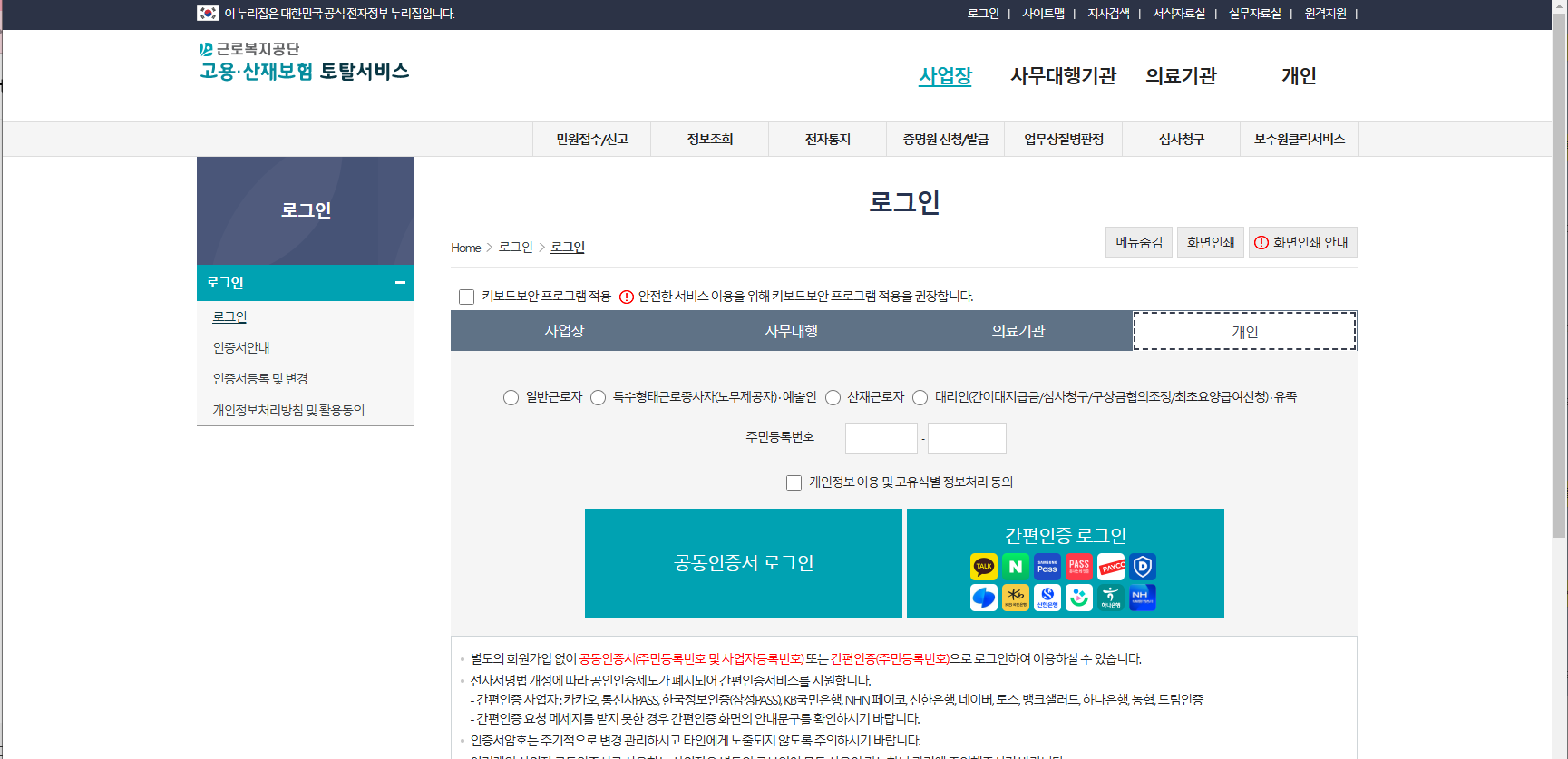 1. 온라인 조회 방법 (근로복지공단 고용· 산재보험 토탈 서비스 홈페이지)